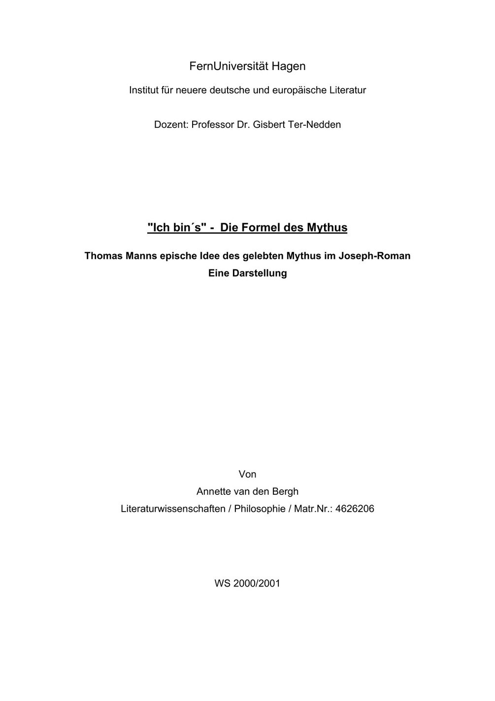 "Ich bin`s" - Die Formel des Mythus im Joseph-Roman